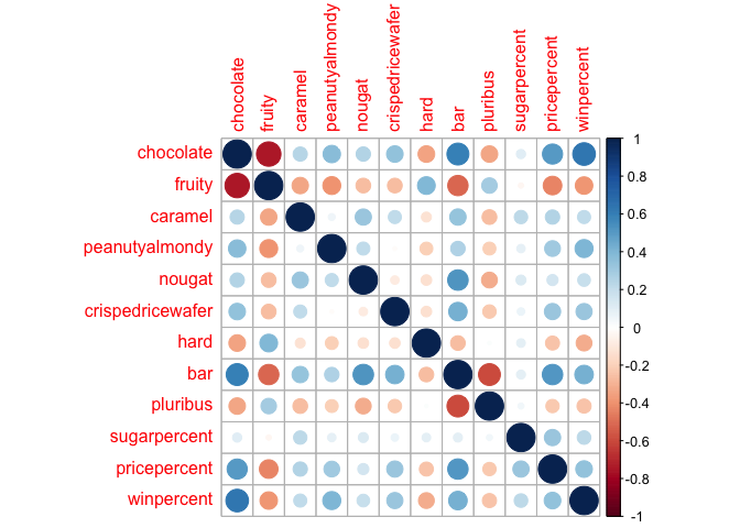 | sugarpercent | 0 | 1 | 0.48 | 0.28 | 0.01 | 0.22 | 0.47 | 0.73 | 0.99 | ▇▇▇▇▆ |