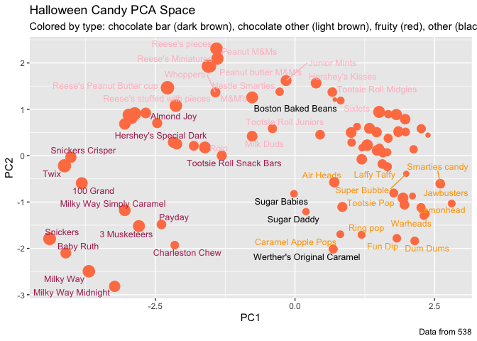 The pricepercent variable records the percentile rank of the candy’s price against all the other candies in the dataset. Lower values are less expensive and higher values are more expensive.