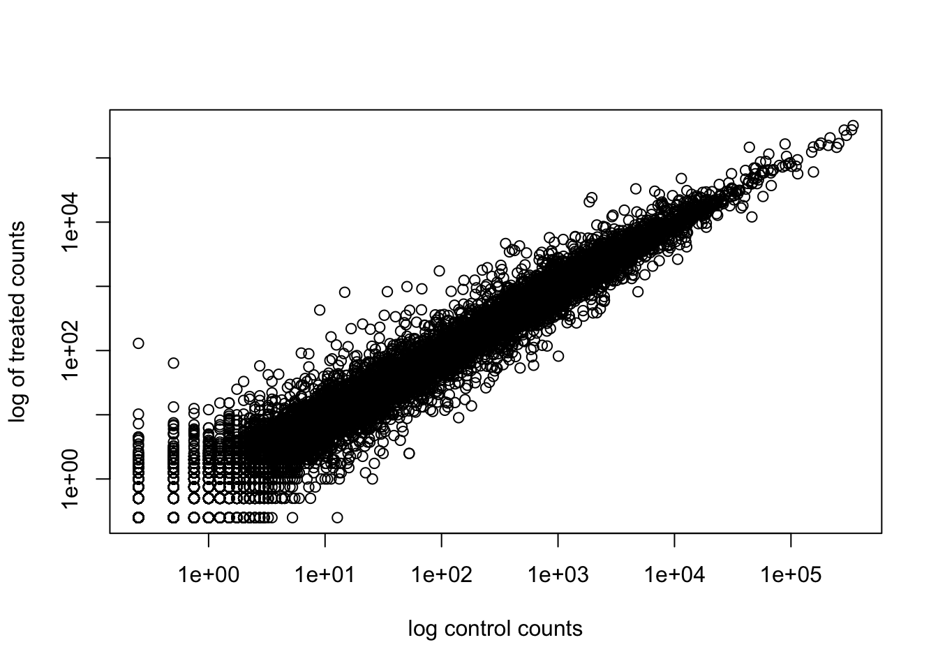 ylab="log of treated counts")Warning in xy.coords(x, y, xlabel, ylabel, log): 15032 x values <= 0 omitted