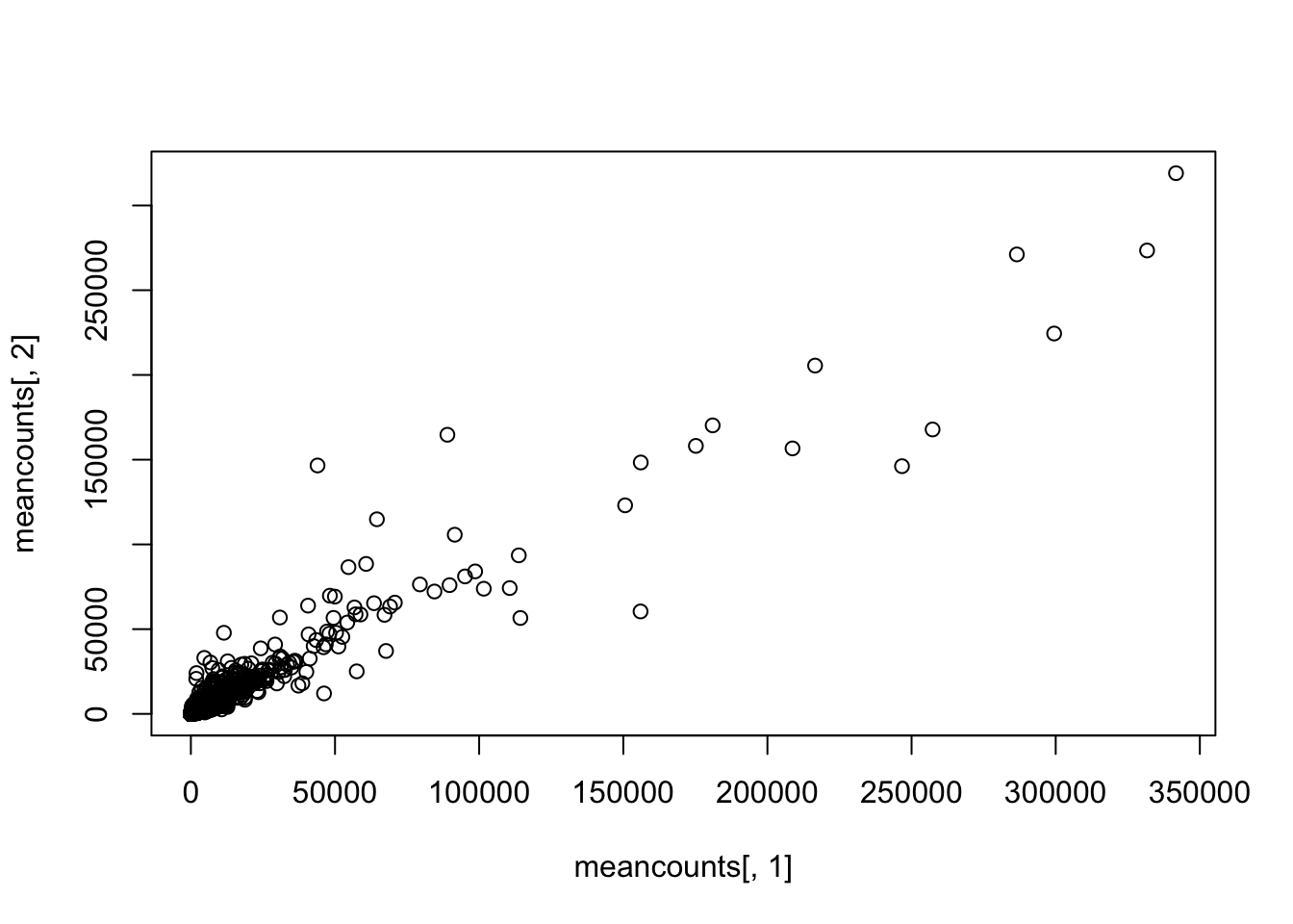 plot(meancounts[,1], meancounts[,2], log="xy",